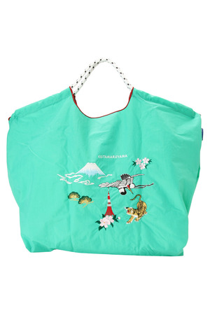 スカジャンにも多用されるポップな日本モチーフが勢ぞろいした、豪華な刺繍とキャッチーなルックスのデザインです。