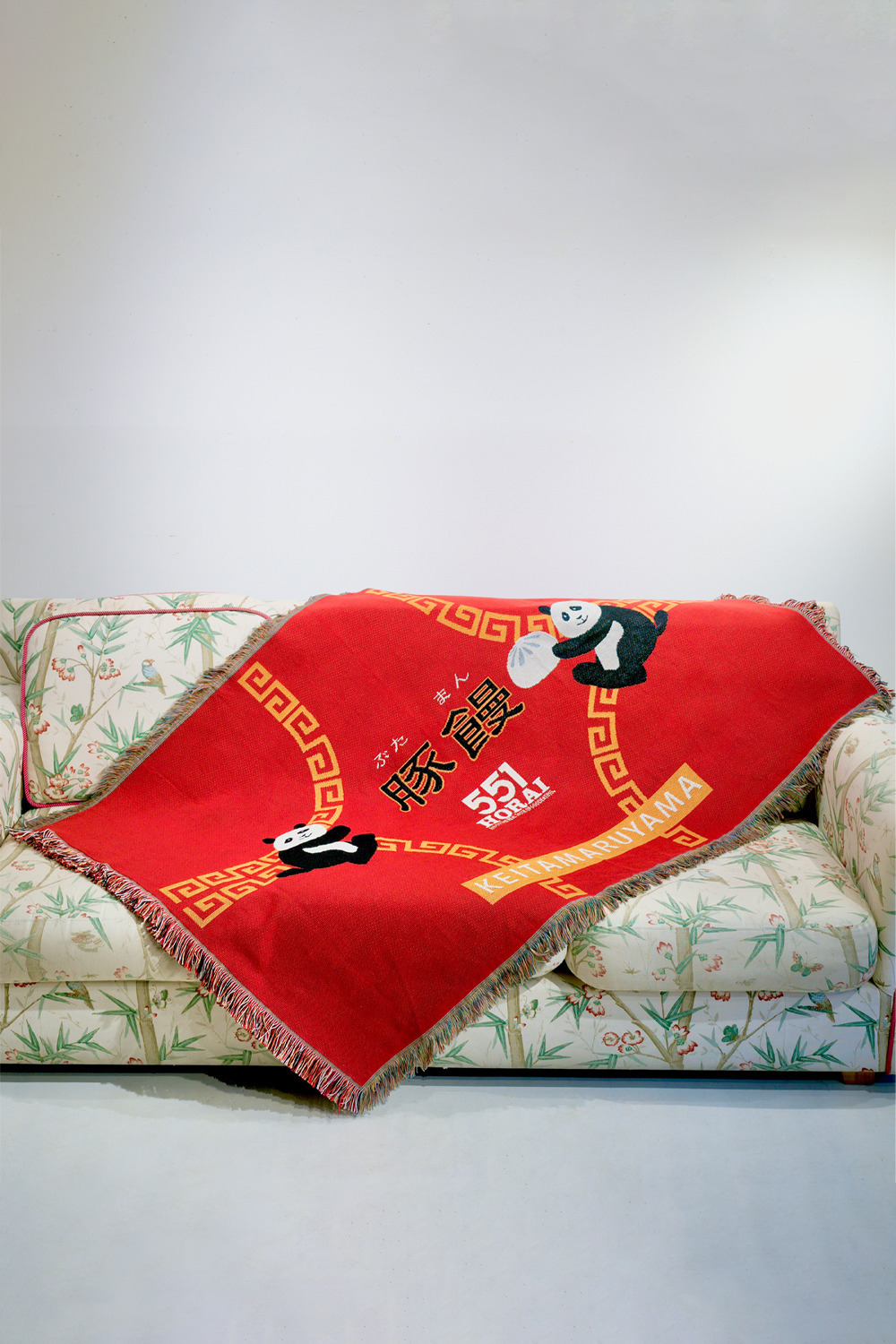 豚饅のパッケージデザインをアレンジしたブランケットは、ケイタマルヤマらしい遊び心が光るアイテムです。