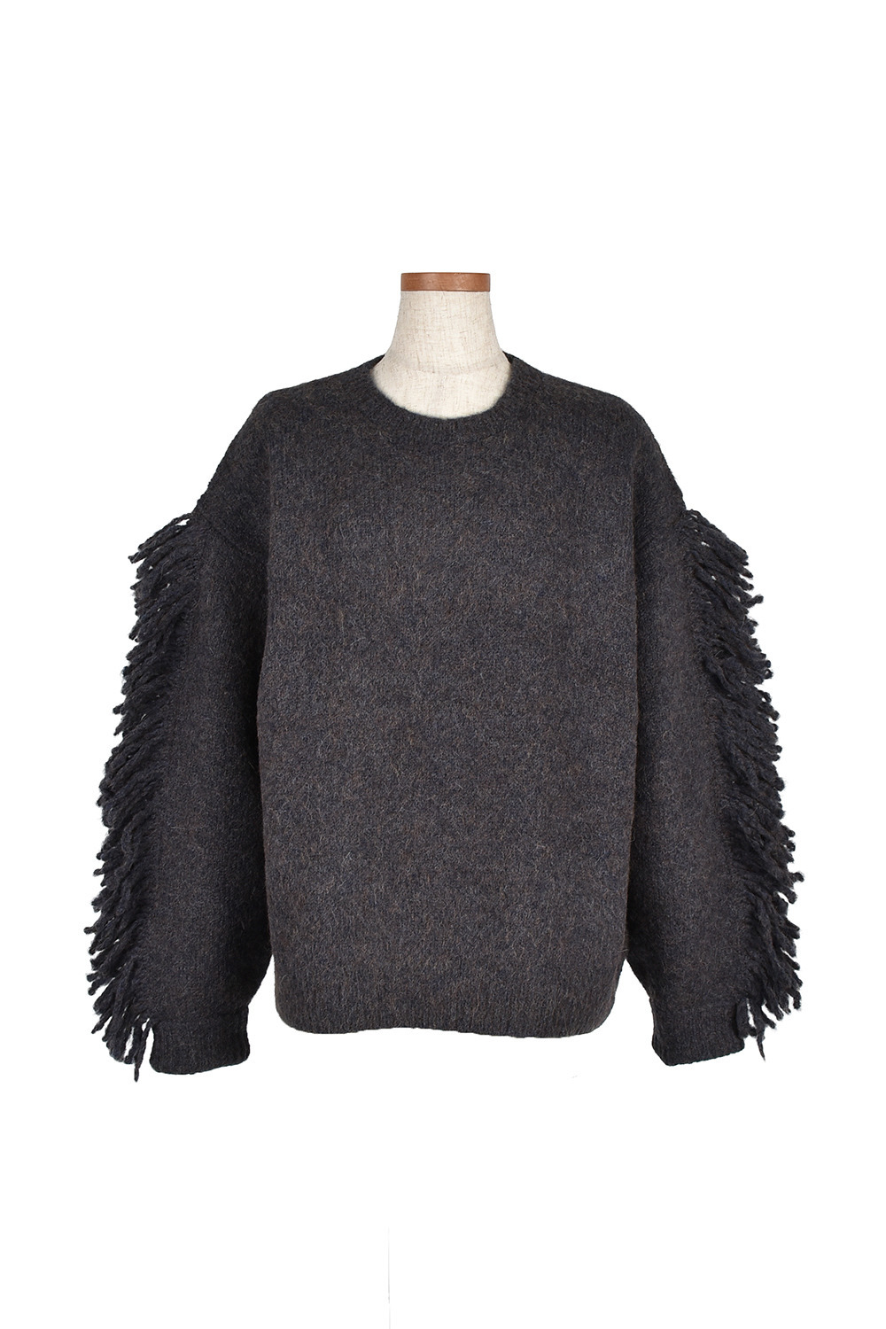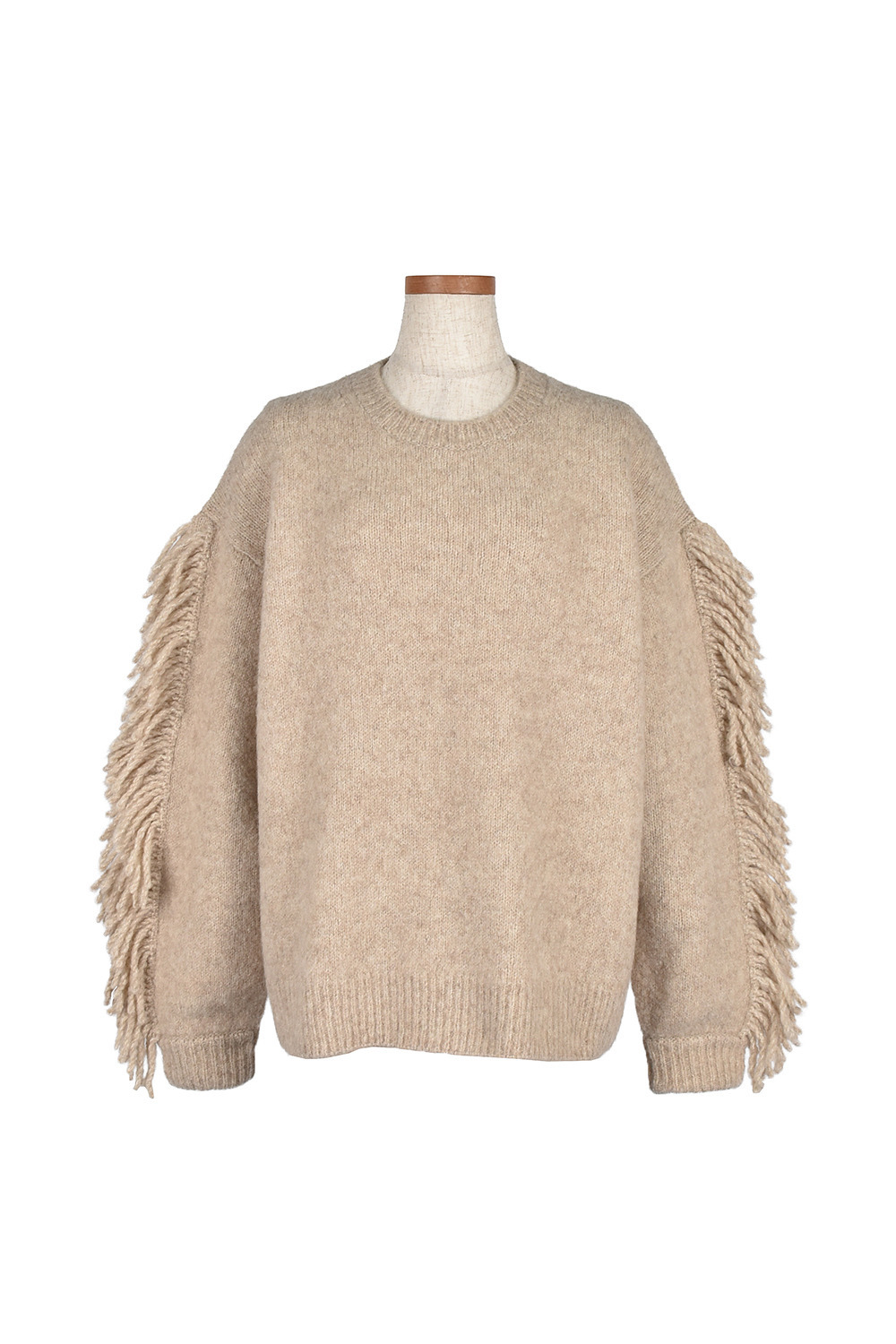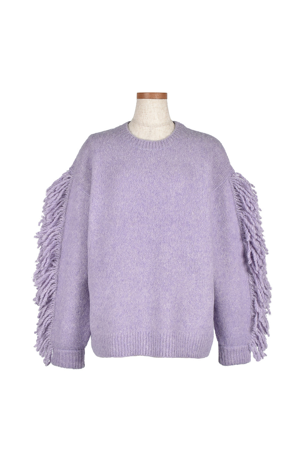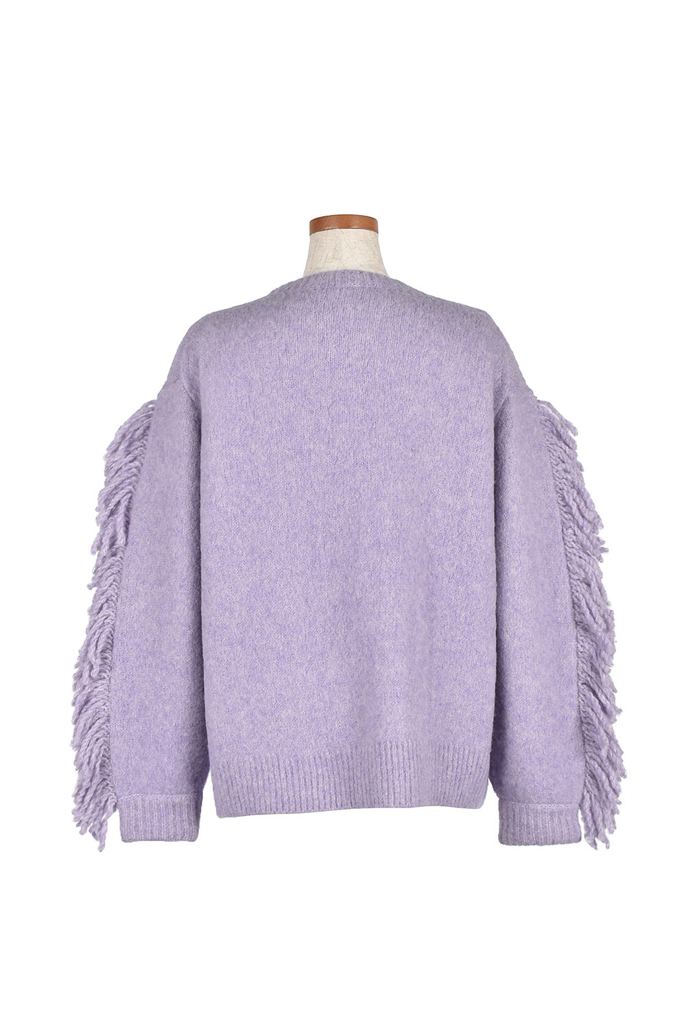 極太毛糸のフリンジをあしらい、心弾む楽し気なムードに。