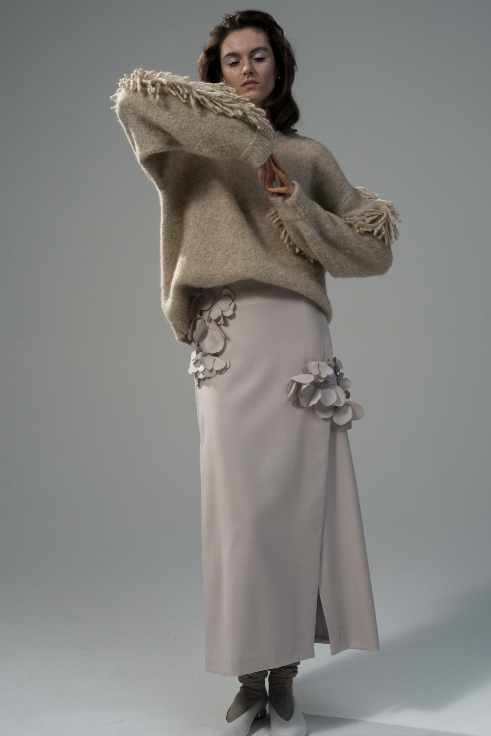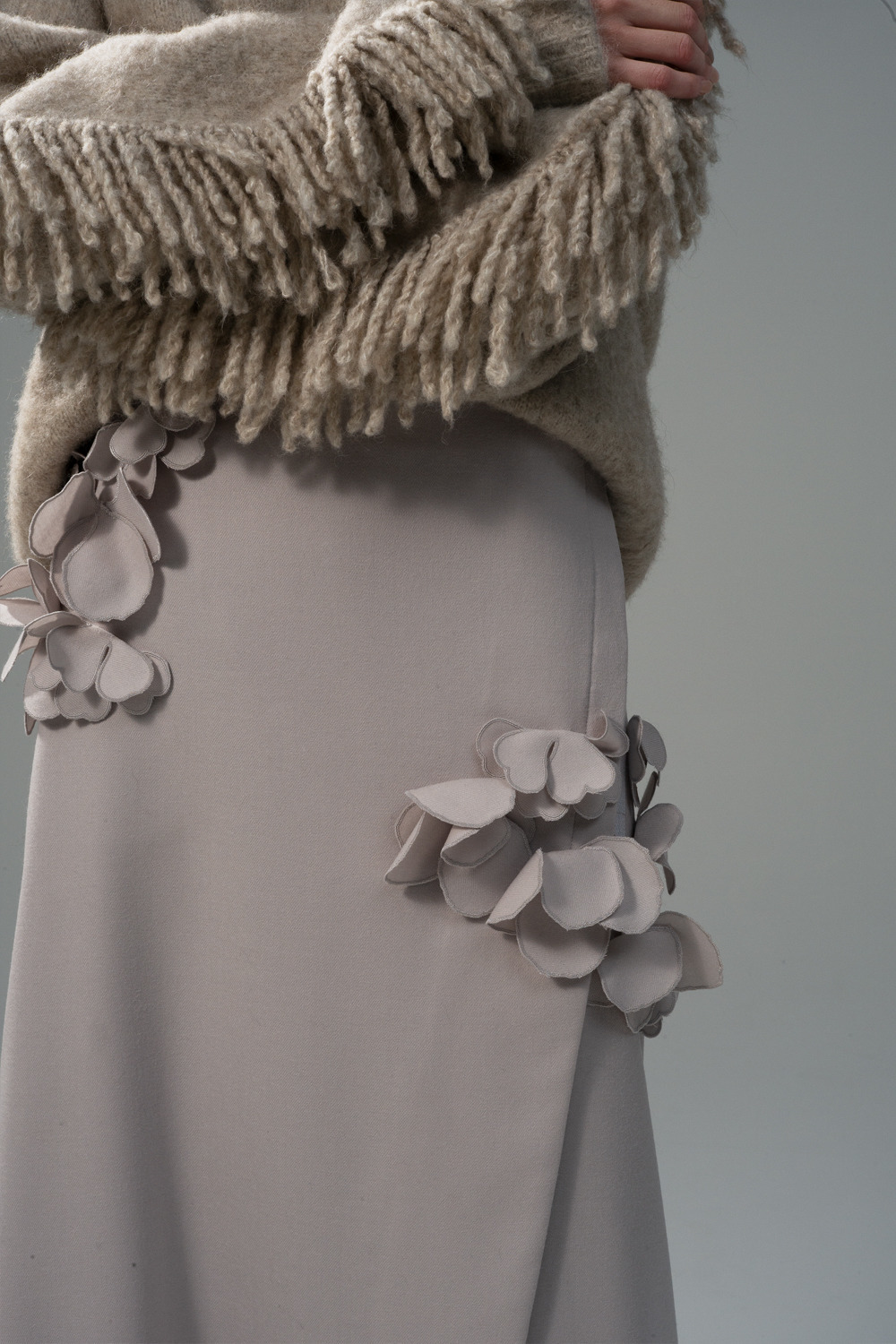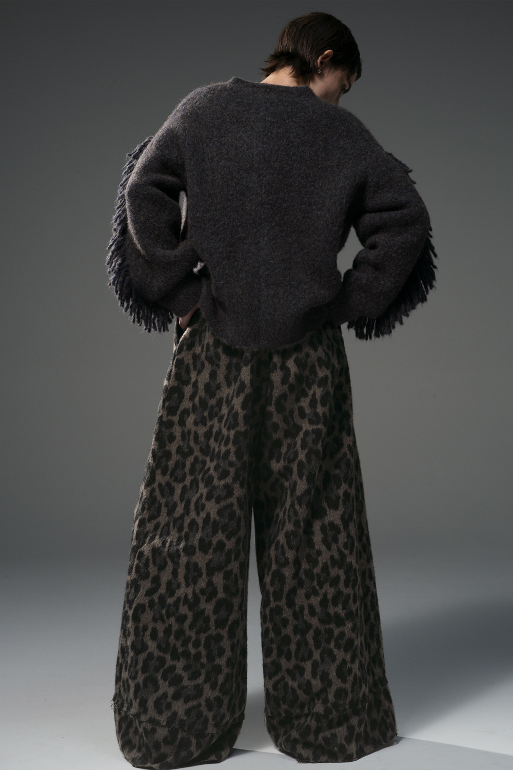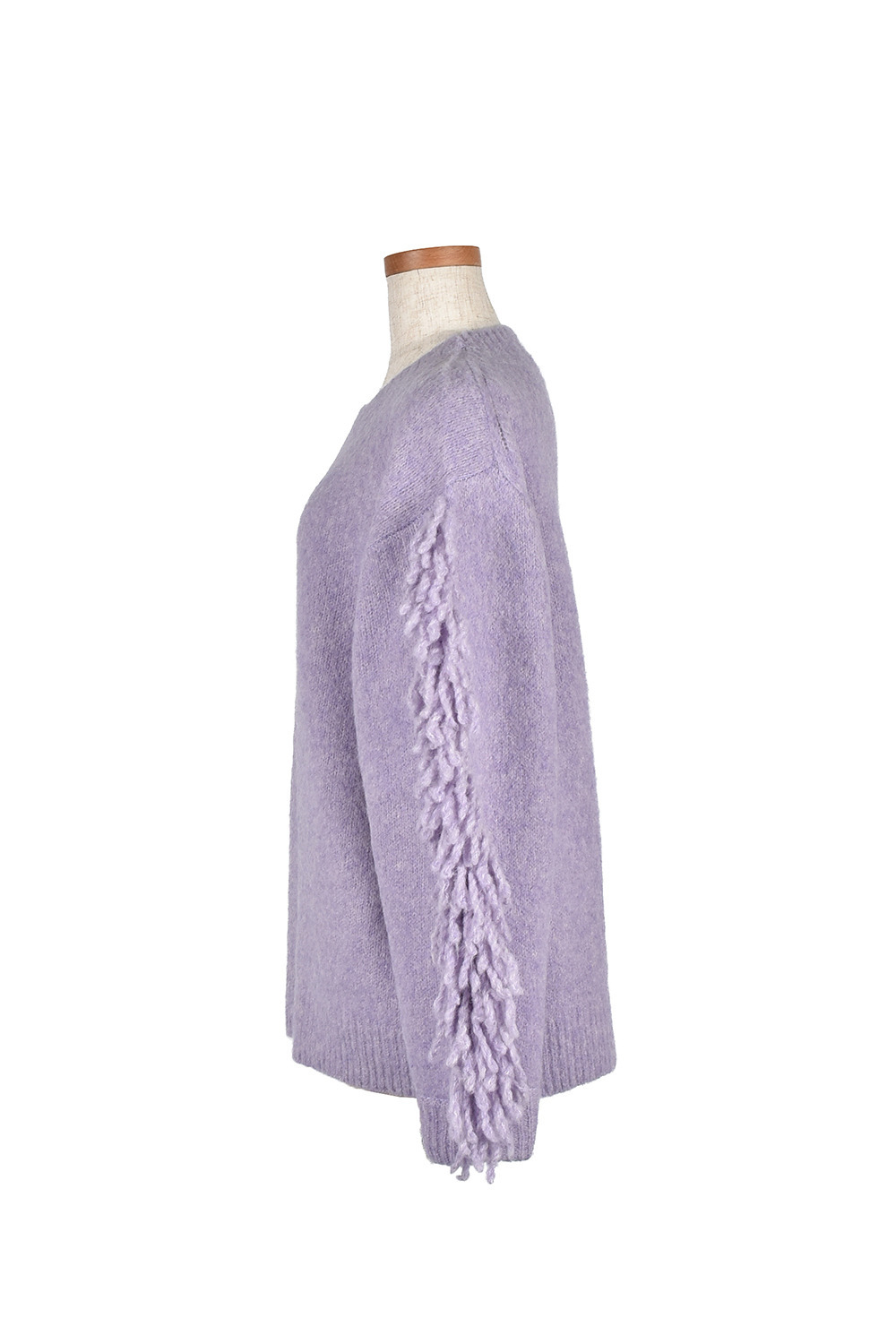 極太毛糸のフリンジをあしらい、心弾む楽し気なムードに。