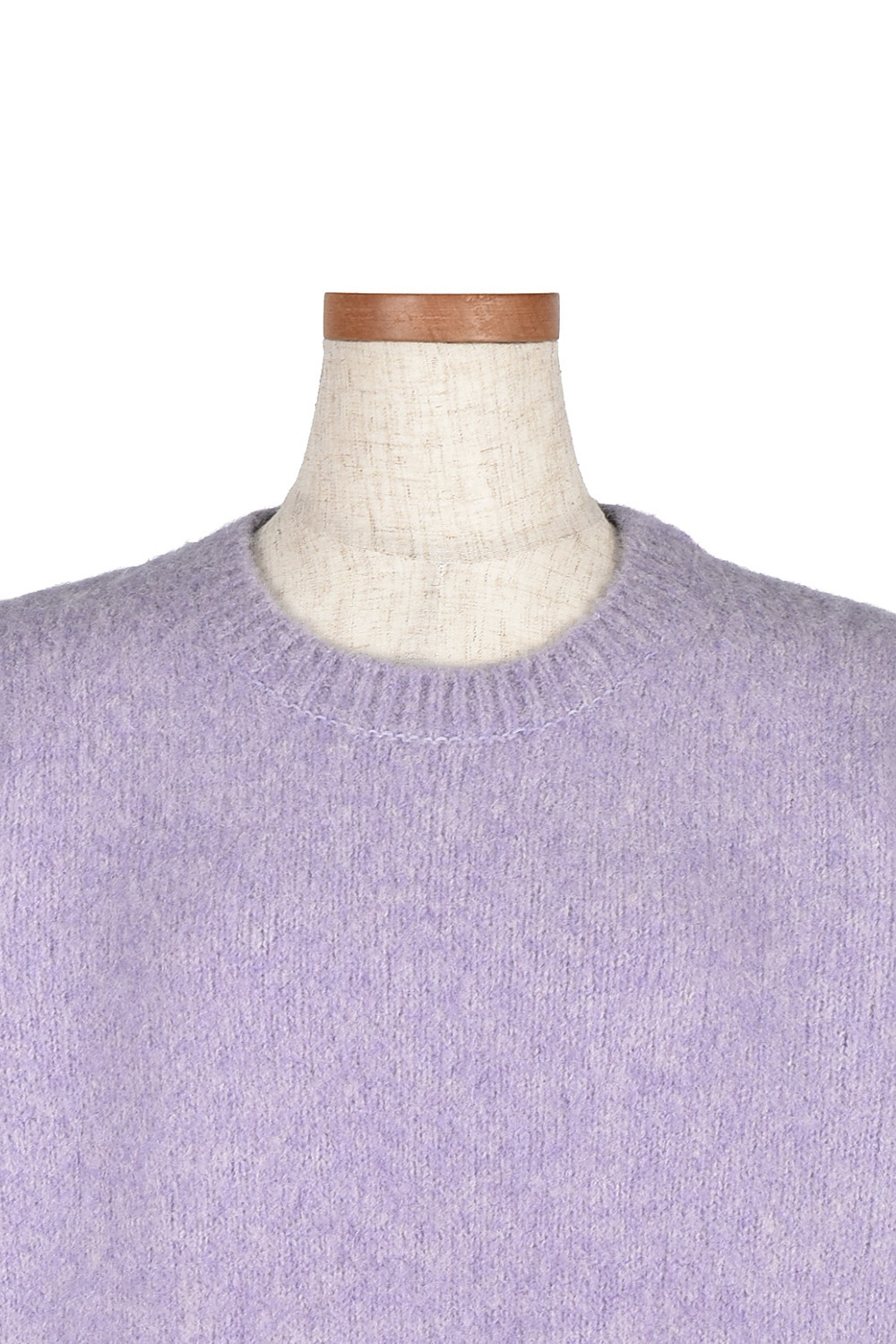 シンプルなクルーネックニットは、杢感のある編地がポイント。