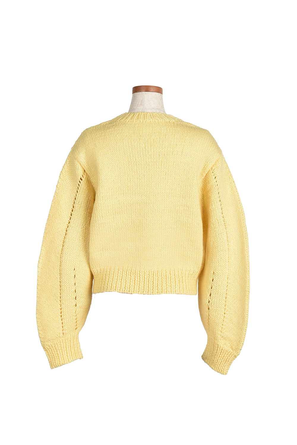 リブや透かしを入れた編地のデザイン性が際立ちます。