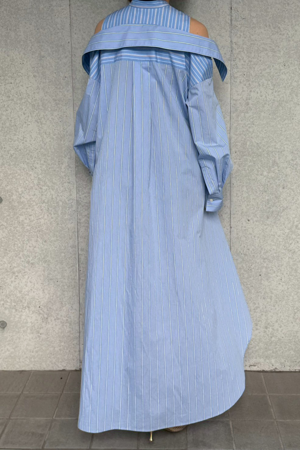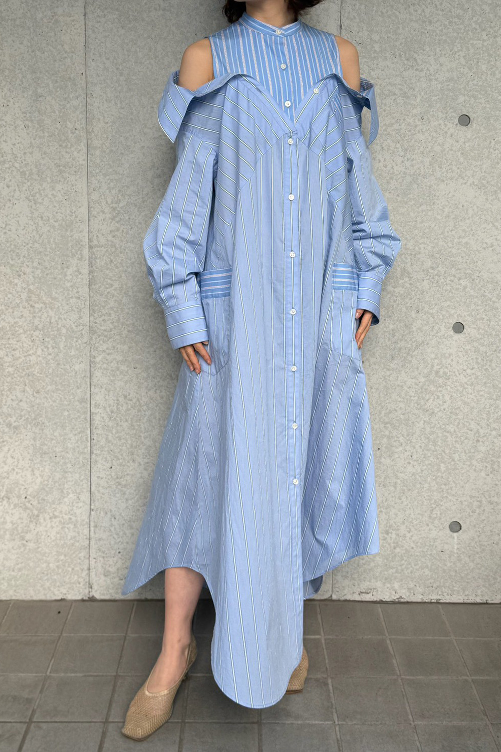 ノースリーブ部分と長袖部分のストライプ生地を変えることで、デザイン性がより際立つ仕上がりに。