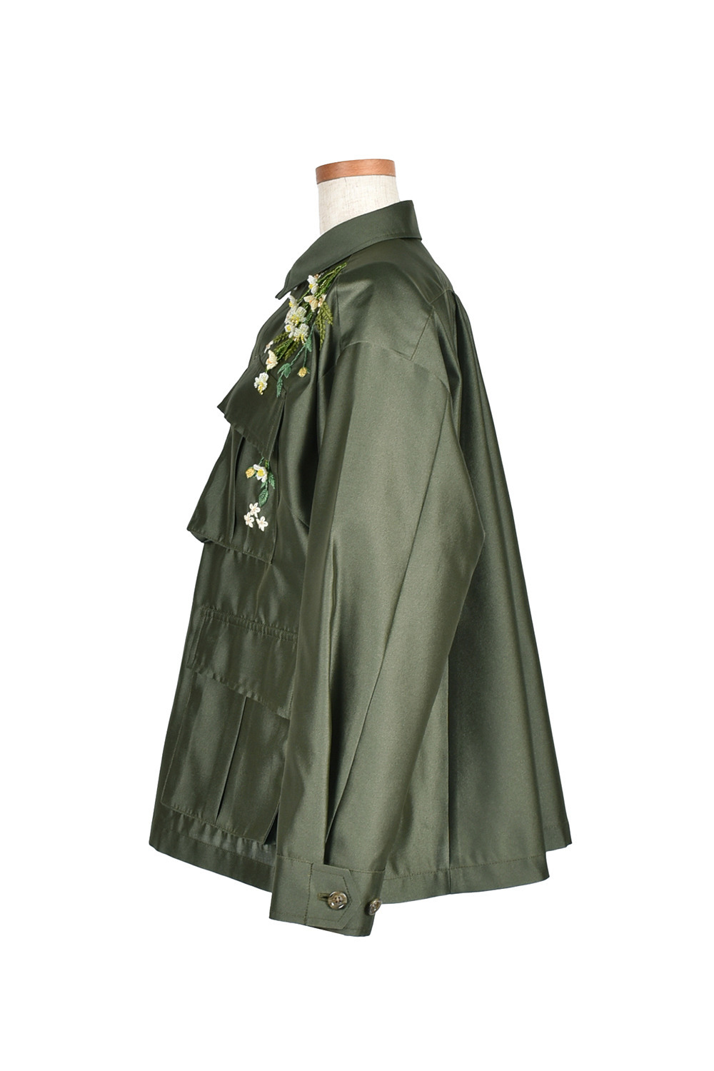 光沢感のあるシルク混のツイル生地は、カジュアルさと上質感を併せもち、大人のミリタリーを実現。
