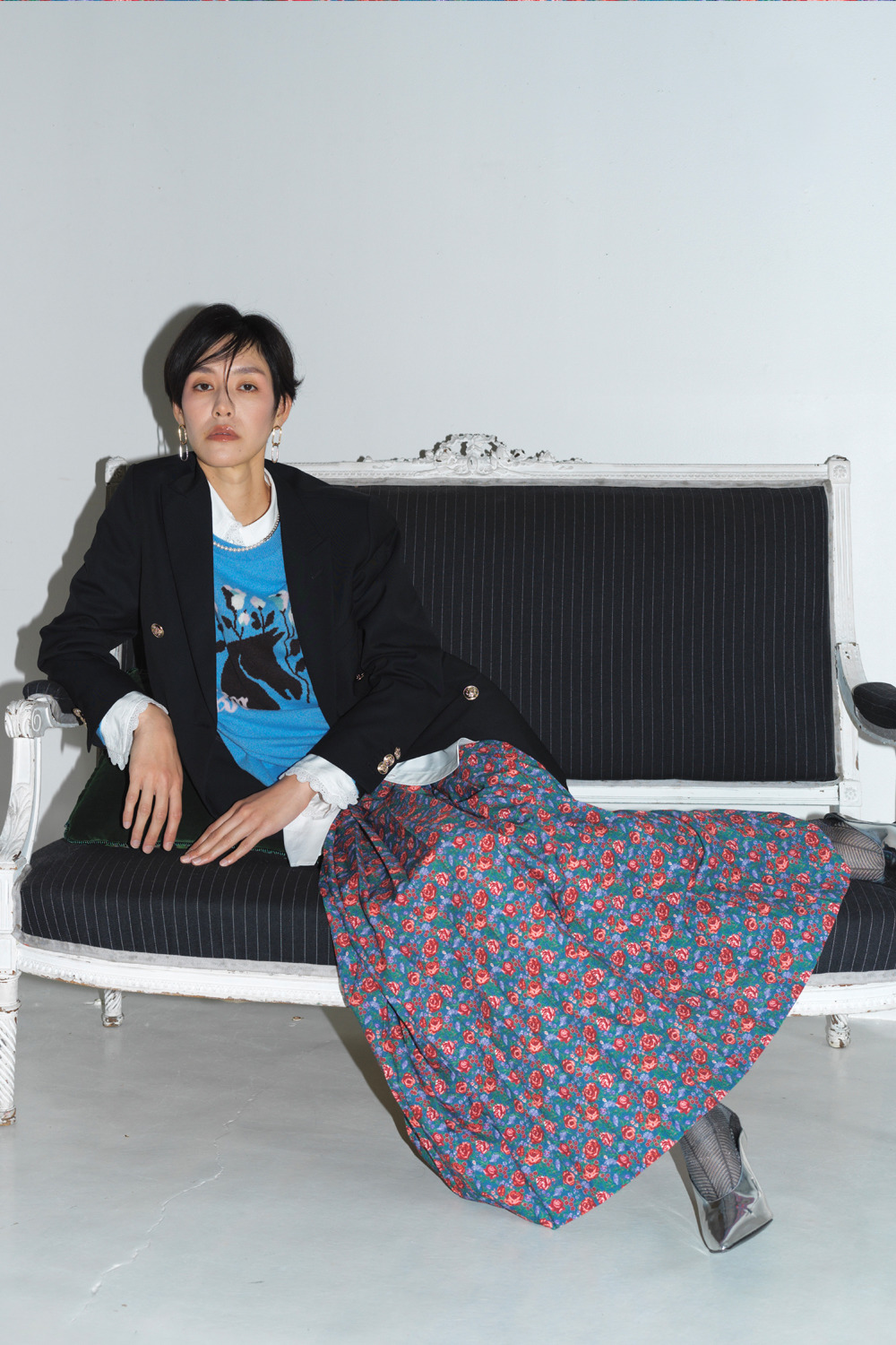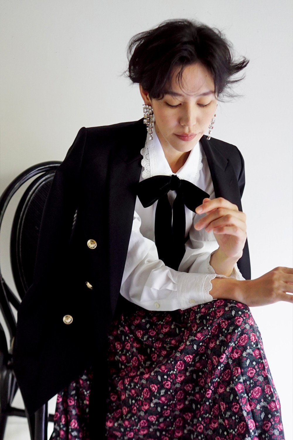 綿素材では表現できない上質な光沢と落ち感があり、トラッドな雰囲気に高級感を添えます。