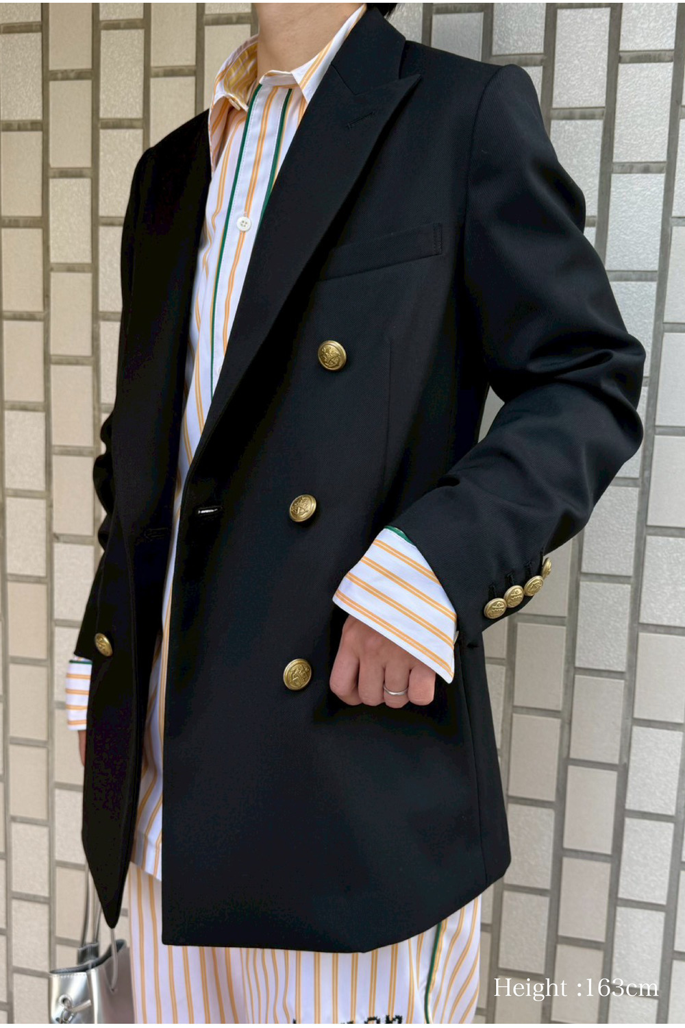 ブランド定番のブレザージャケットを、コットンギャバジンをウールで再現した特別な生地で仕上げました。