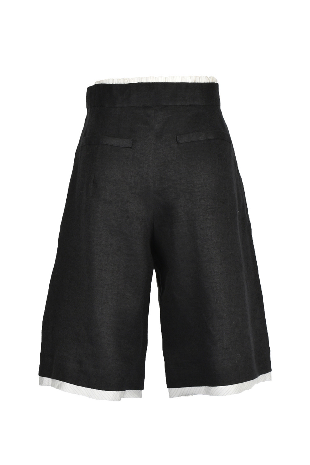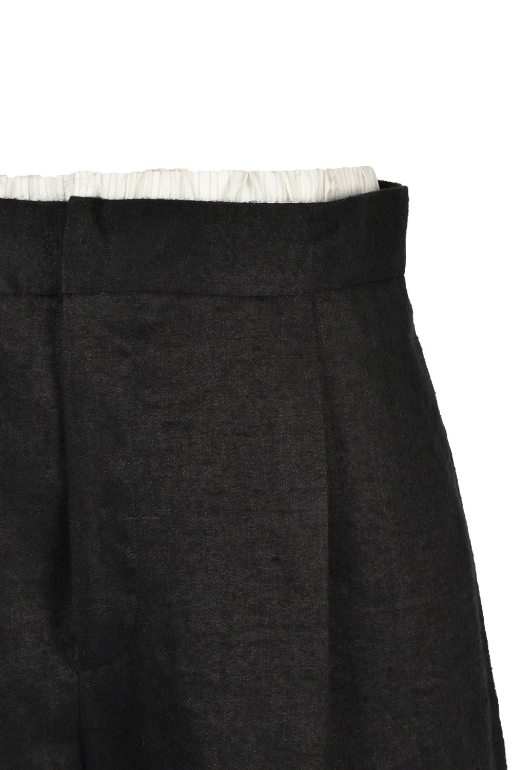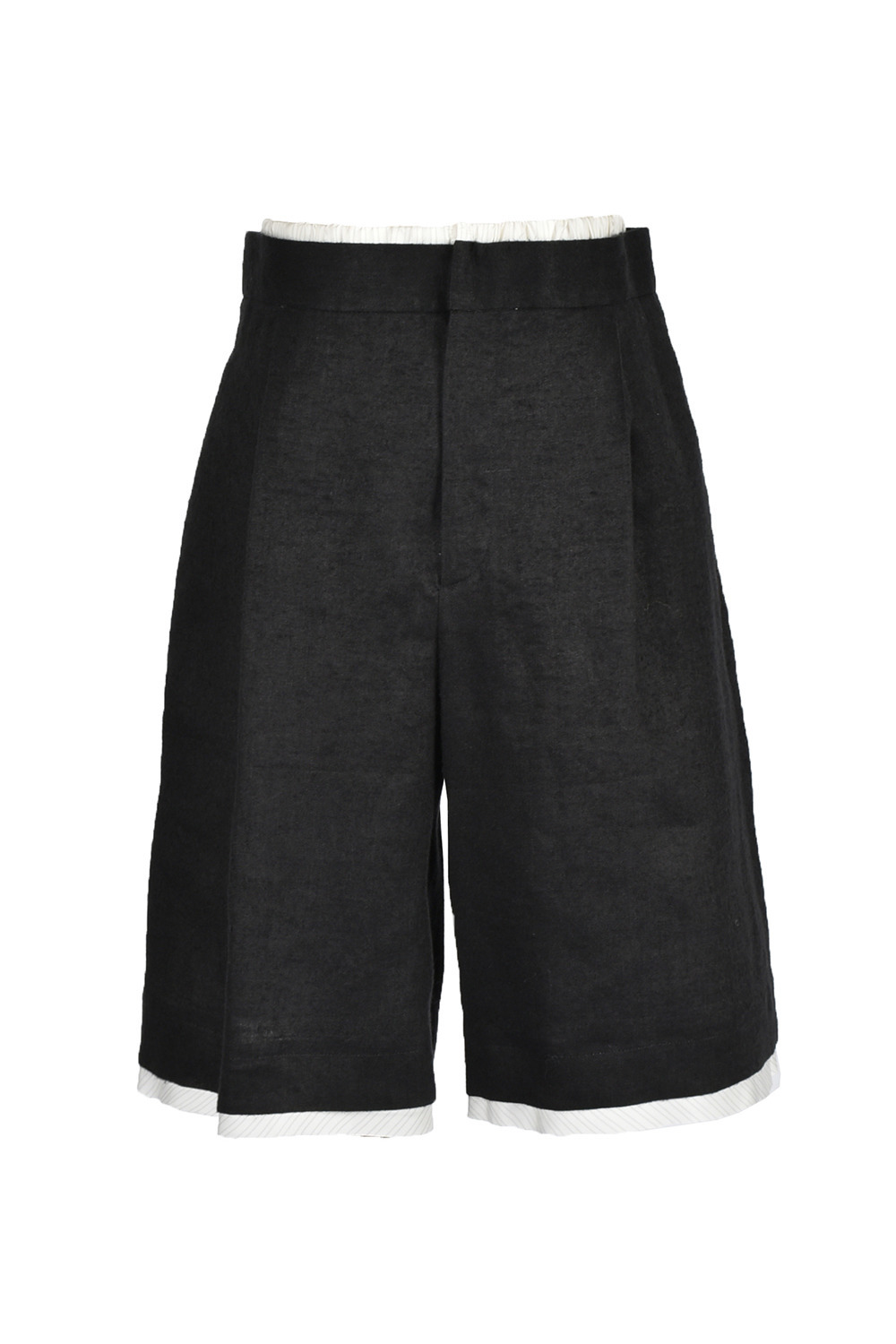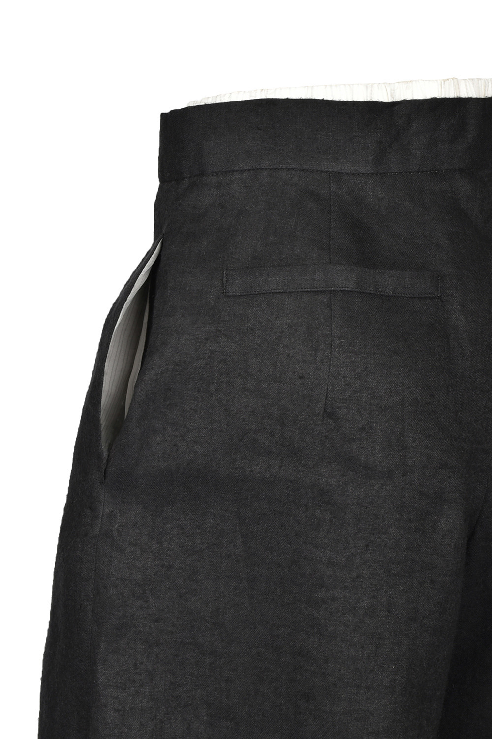 さらりとした肌あたりと、独特の風合いのあるmajotaeの生地を使ったショートパンツは、ウエスト部分と裾にあしらった別布がアクセント。