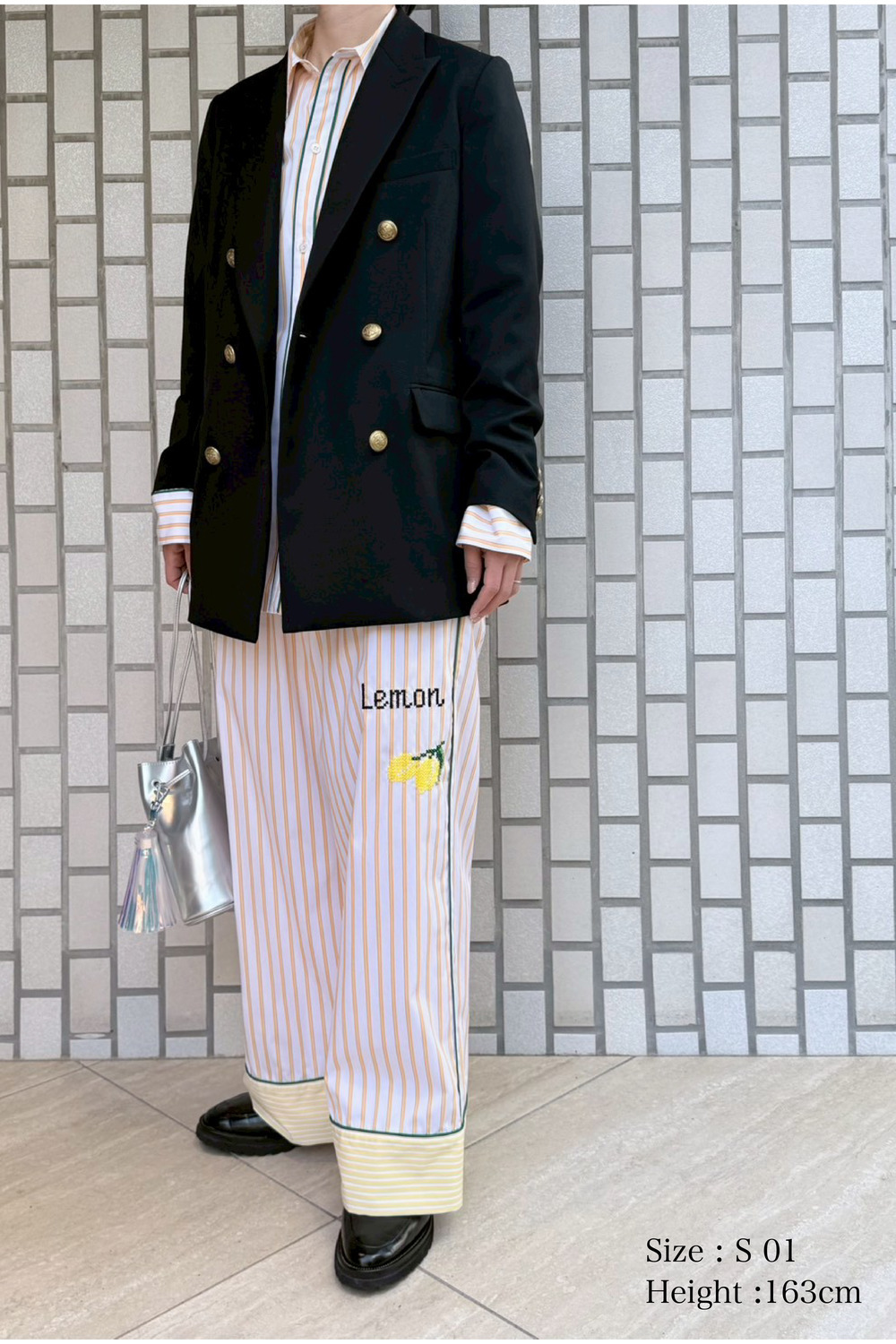 Lemon Embroidery Stripe Easy パンツ